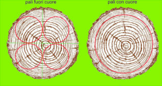 • PALI IN LARICE CON CUORE che, essendo ricavati dalla piantina con midollo, presentano fenditure anche di
