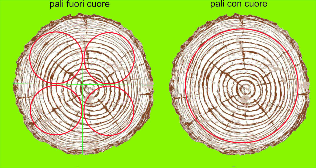 • PALI IN LARICE FUORI CUORE ricavati dal quarto del tronco, che essendo privo di midollo risulta meno